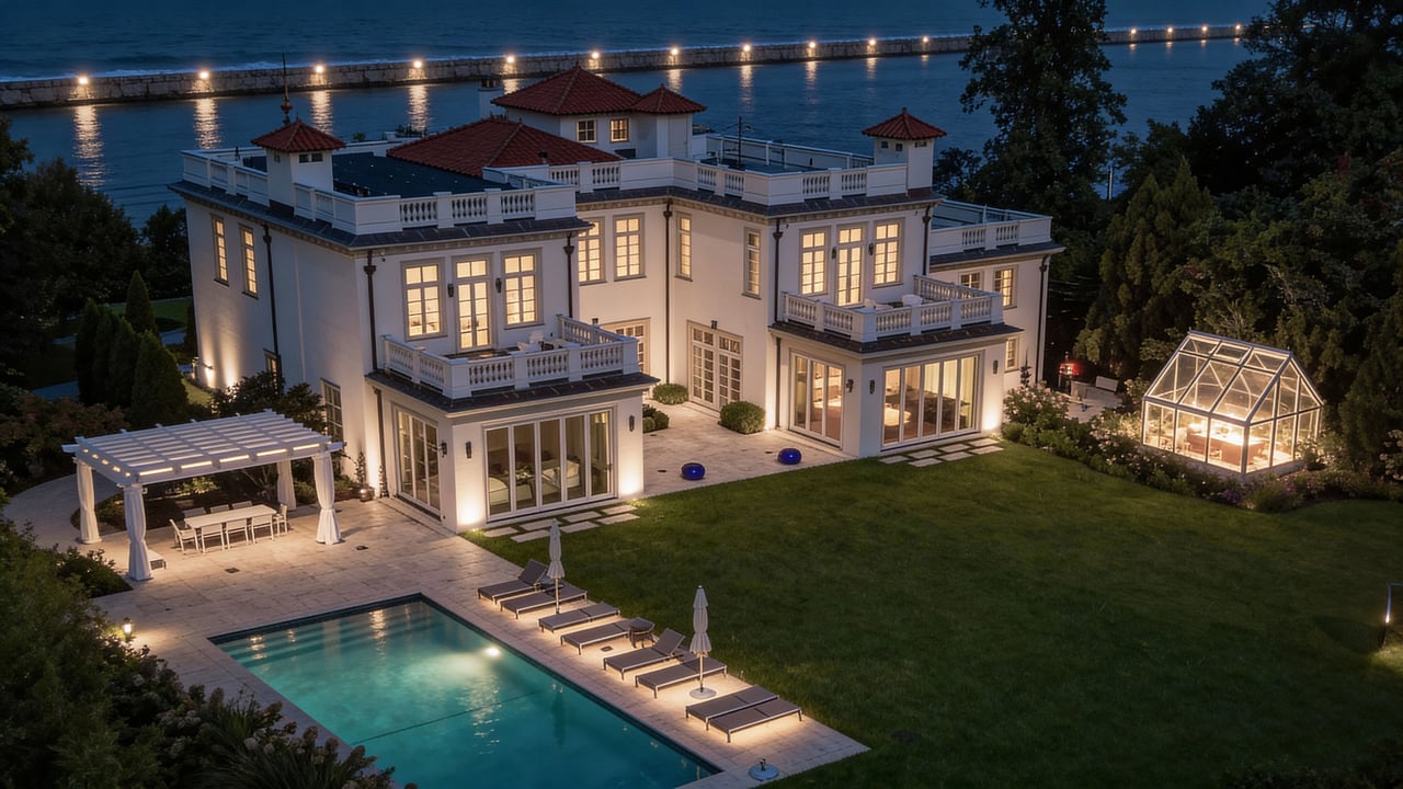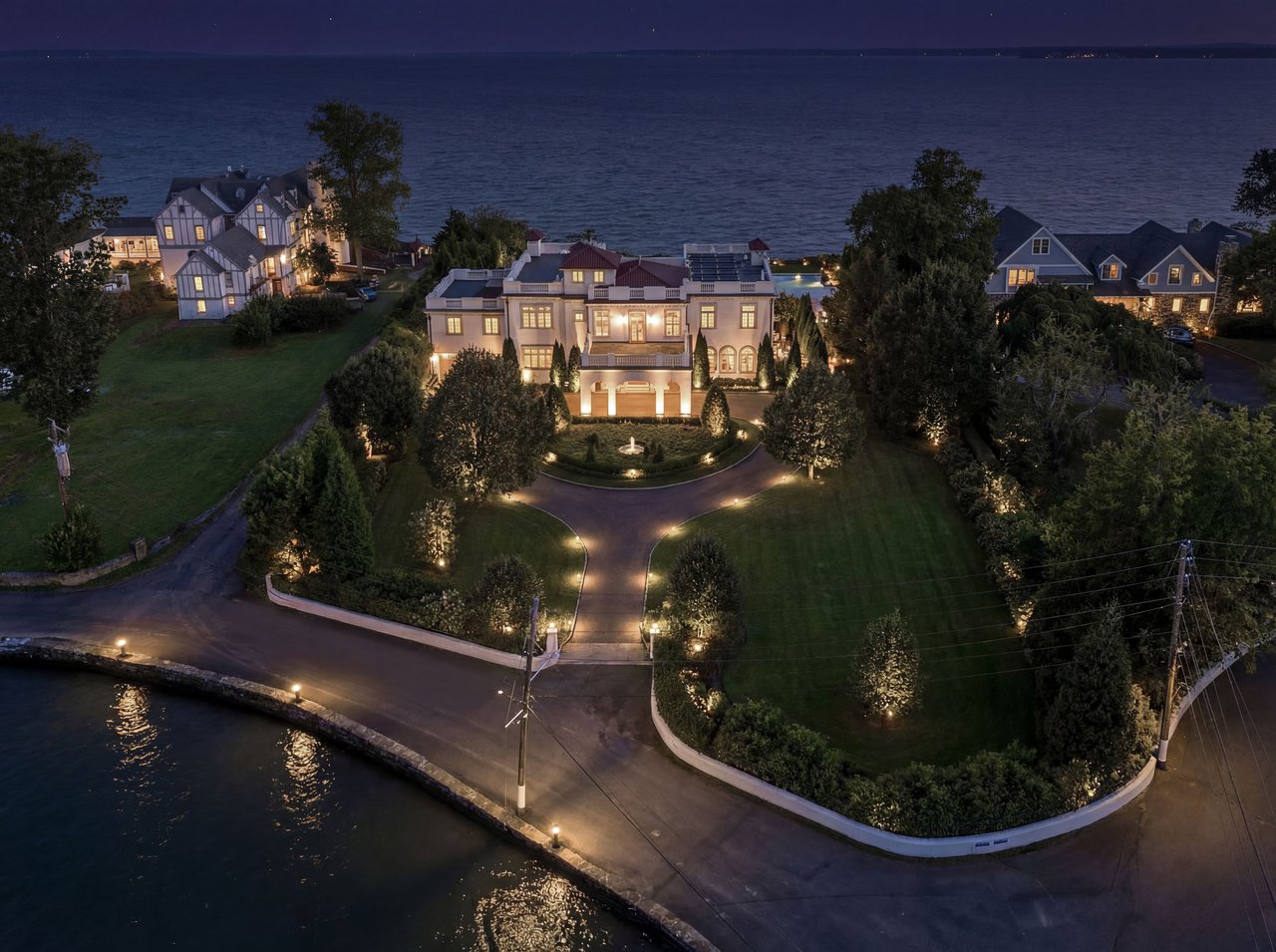 A rare and distinguished waterfront offering, located just 30 minutes from Manhattan, set within the exclusive, gated enclave of Premium Point. Masterfully crafted by Thompson-Raissis Architects, the home was created to capture breathtaking water views from nearly every room, featuring balconies and floor-to-ceiling retractable windows, all executed with the highest caliber of finishes. A dramatic glass-and-marble atrium foyer sets the tone for refined living. Luxurious amenities include a Bulthaup kitchen with top-tier appliances, refined formal and family rooms, and a serene primary suite with dressing rooms, spa bath, and private lounging deck. Additional spaces accommodate offices, gym, and guest suites, while the lower level offers a spacious game room with wet bar, media room and an elegant glass wine room. Exceptional indoor/outdoor living surrounds a heated pool, waterside fire pit, dining terraces, and a private beach just steps away. Boasting open-water views of the LI Sound and the NYC skyline, frontage on Premium Mill Pond, 24/7 security, Mamaroneck schools and marina access, this is waterfront luxury, perfectly defined.