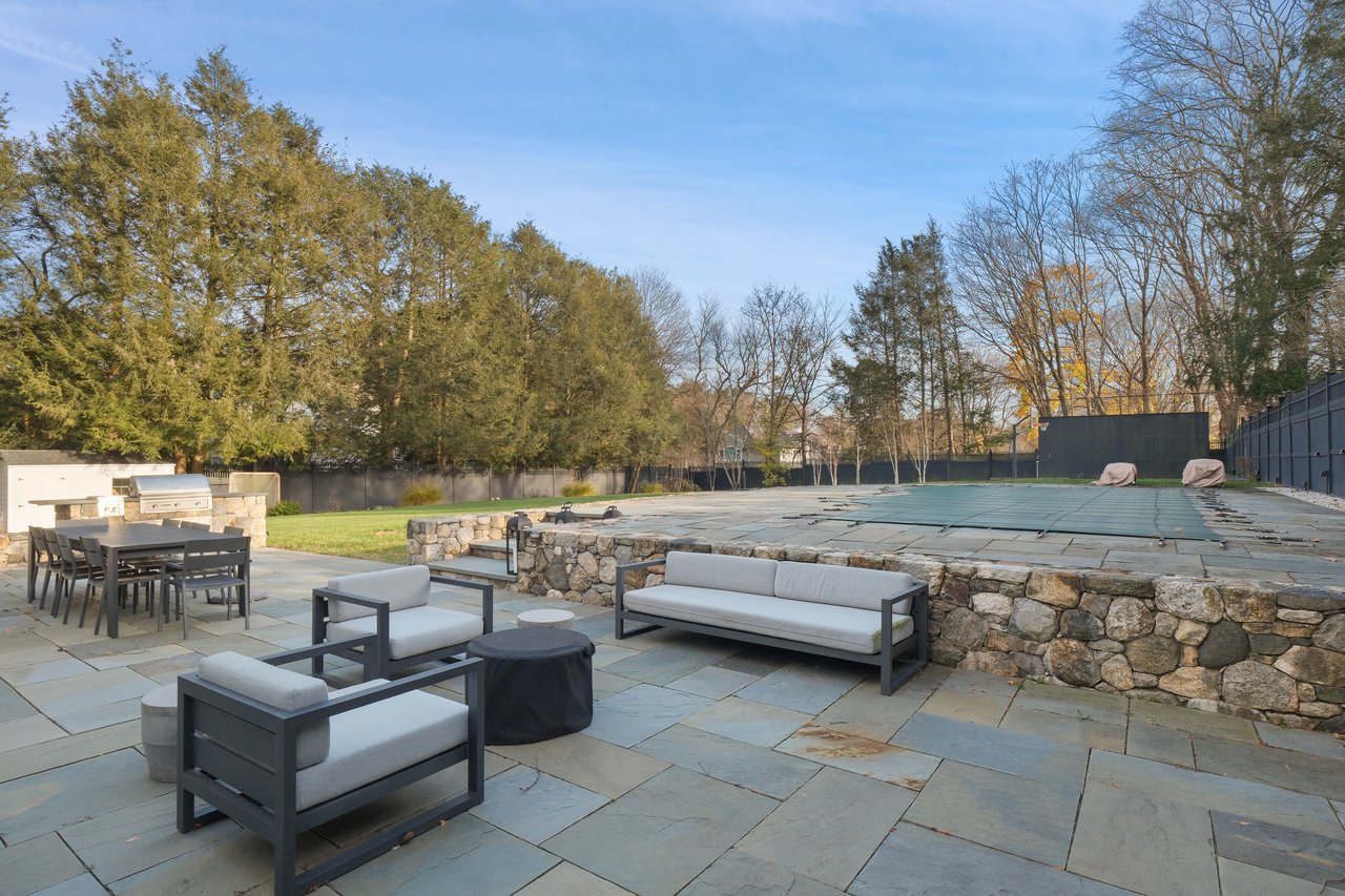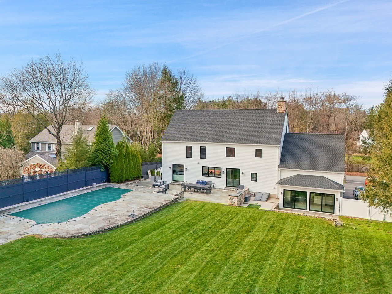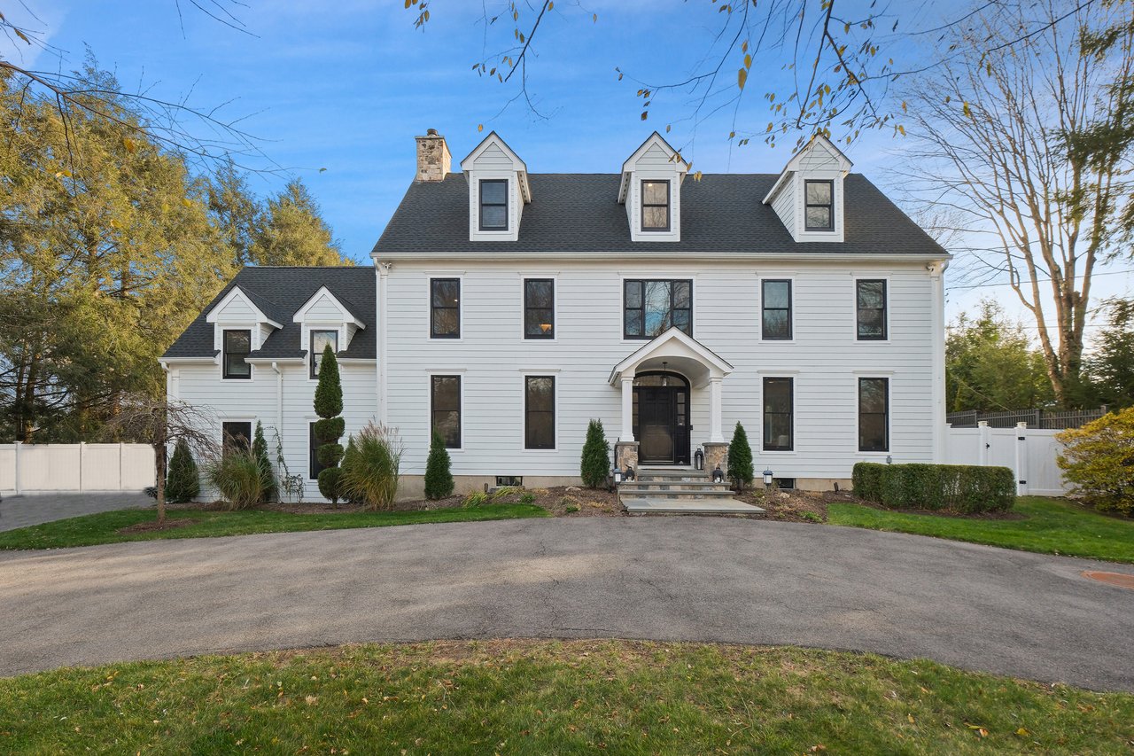 Beautifully updated Colonial offers an open floor plan with four floors of living. A sun-drenched, chef-caliber kitchen and adjoining family room form the heart of the home, complemented by elegant formal rooms and a private ground-floor office and sunroom with full bath. The upper level includes a primary suite with a large dressing room, fireplace and a superbly updated bath along with two ensuite bedrooms. The third floor features a private retreat with two adjoining bedrooms and a full bath. Enhancing the lifestyle experience, the lower level features a gym and sauna, while the outdoors showcase a pool with spa, sport court, and a level, private yard. Move in ready.