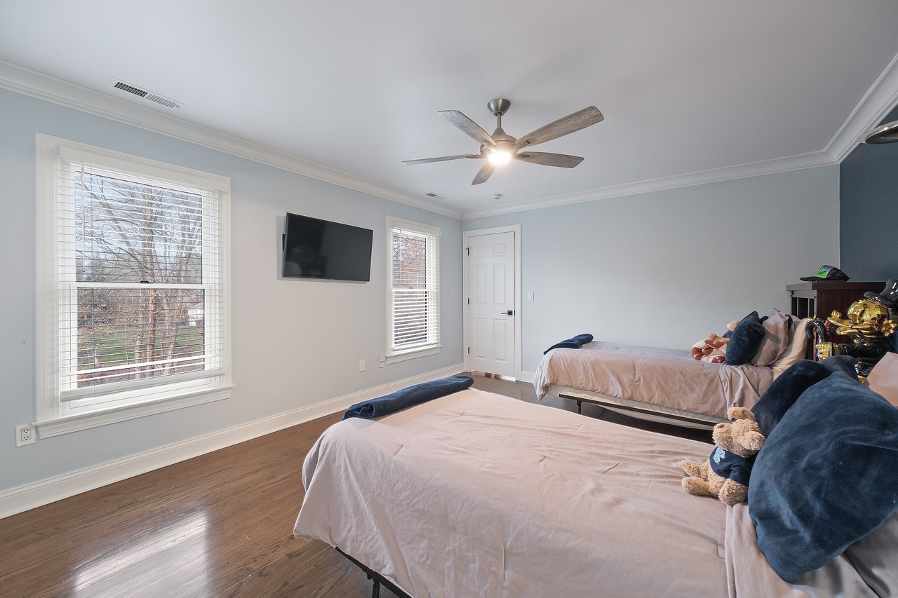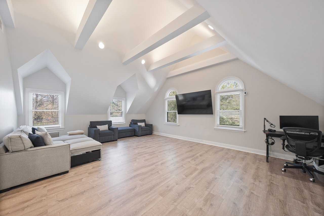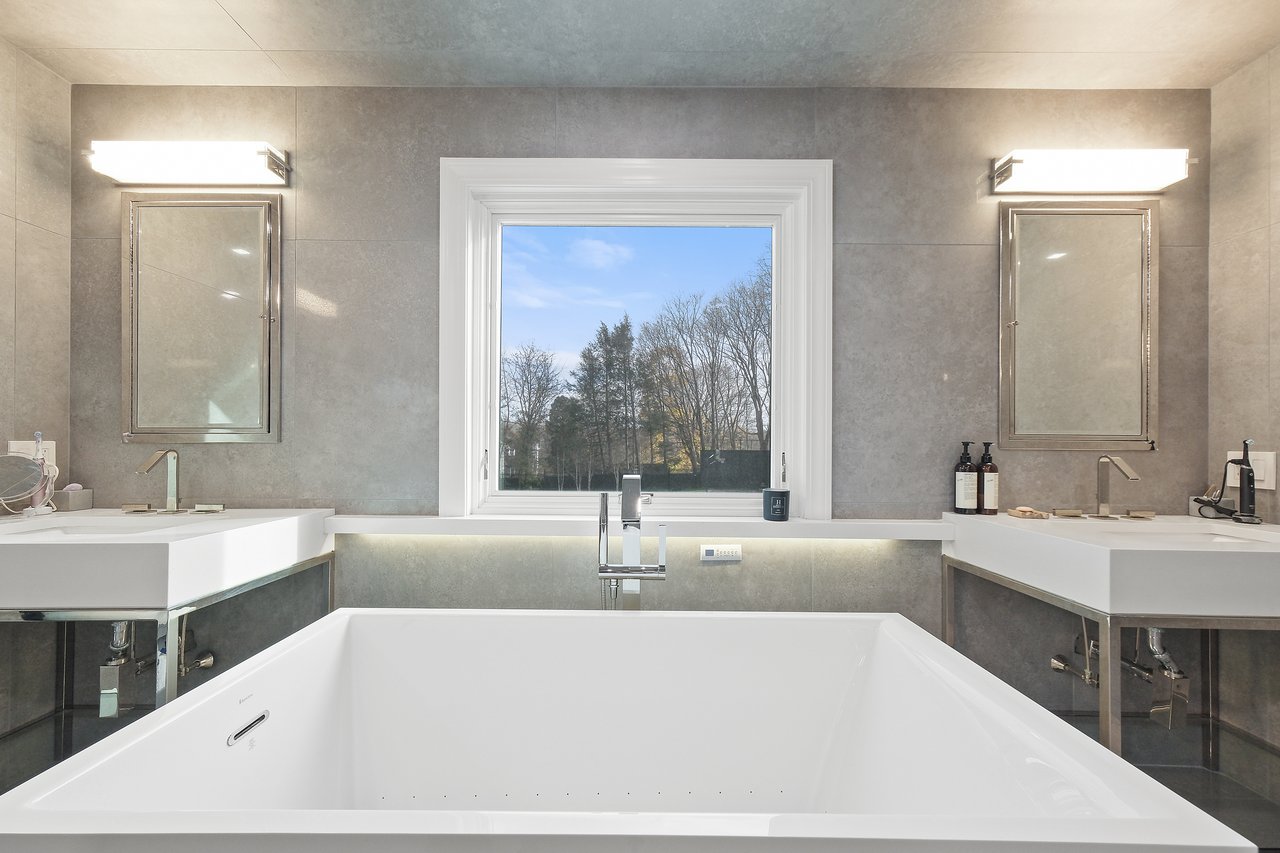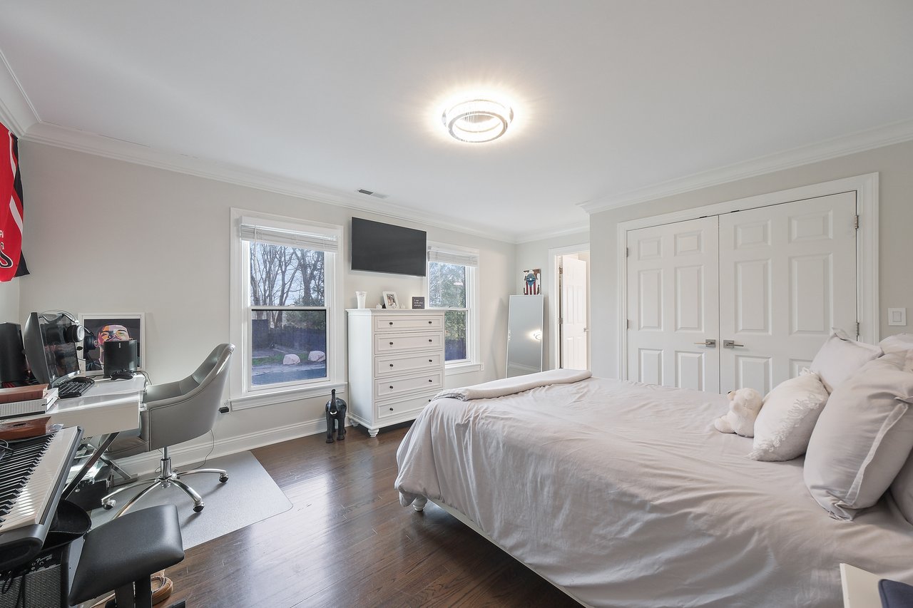 Beautifully updated Colonial offers an open floor plan with four floors of living. A sun-drenched, chef-caliber kitchen and adjoining family room form the heart of the home, complemented by elegant formal rooms and a private ground-floor office and sunroom with full bath. The upper level includes a primary suite with a large dressing room, fireplace and a superbly updated bath along with two ensuite bedrooms. The third floor features a private retreat with two adjoining bedrooms and a full bath. Enhancing the lifestyle experience, the lower level features a gym and sauna, while the outdoors showcase a pool with spa, sport court, and a level, private yard. Move in ready.