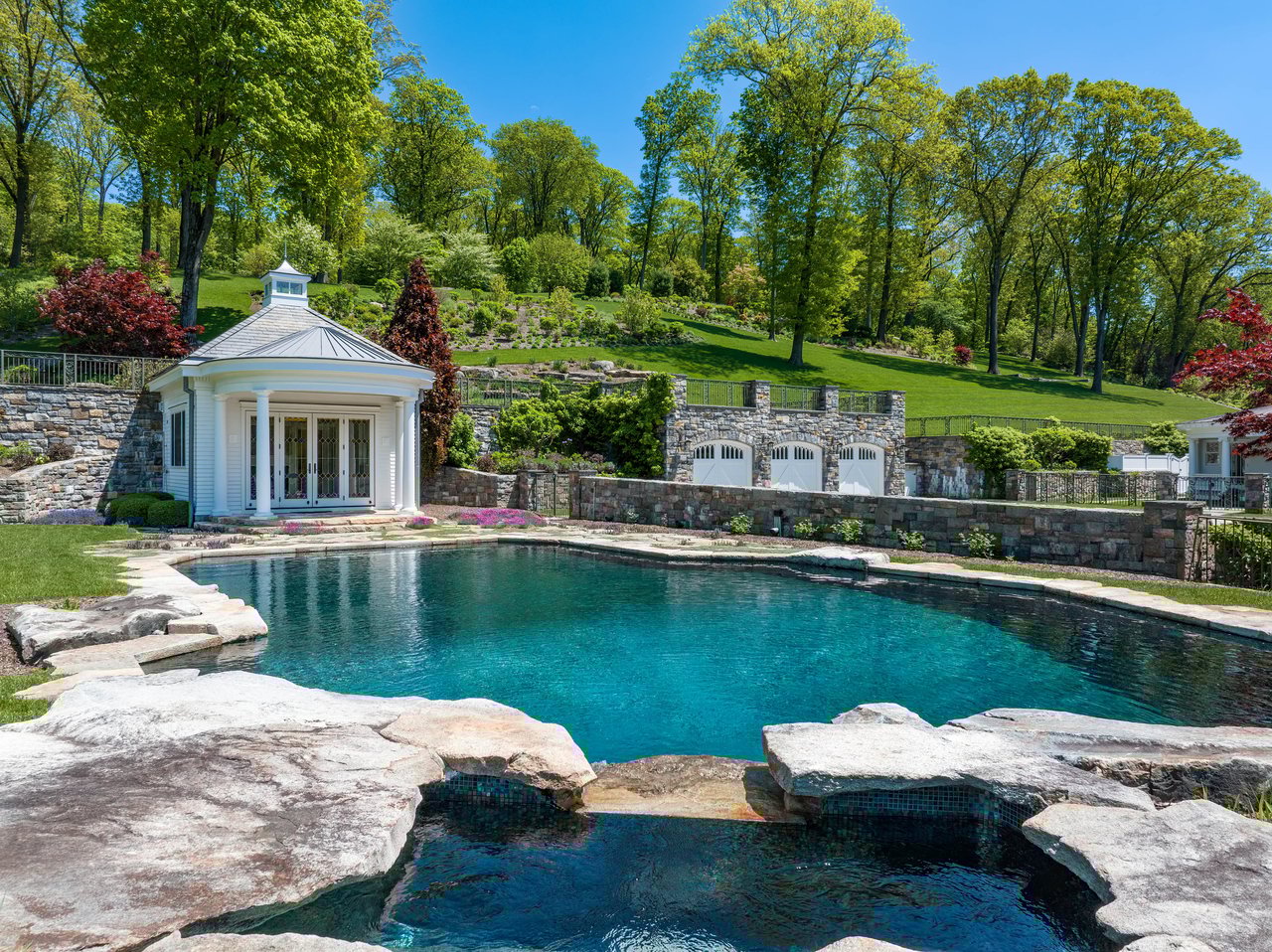 A masterpiece of timeless elegance, this stately 1903 stone and shingle manor is set on 15 acres of impeccably landscaped grounds. Recently renovated with thoughtful attention to detail, the home seamlessly blends historic charm with modern luxury. Sun drenched rooms boast soaring ceilings, exquisite old growth black walnut floors and architecturally stunning windows and doors that enhance the home's inviting ambiance. One of the property's most captivating features is its expansive wraparound porch—one of the finest in the area—offering the perfect setting for serene mornings and elegant entertaining. Complementing the main residence is a detached three-car stone garage, an oversized pool, and a dramatic pool house, creating an idyllic retreat for relaxation and recreation. A rare and extraordinary offering, this distinguished estate offers a unique opportunity to own a piece of history while indulging in the finest comforts of contemporary living.