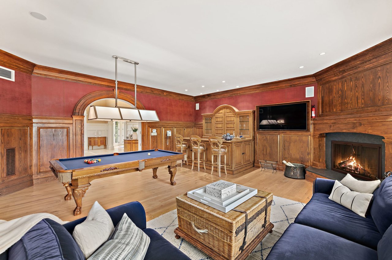 Stunning shingle style estate reminiscent of coastal Hamptons architecture set on 2.5 acres of private level property. A dramatic two-story foyer welcomes you to the formal dining room, gourmet kitchen and spacious great room that flows perfectly to the outdoors. There is rich millwork throughout, including coffered ceilings, raised paneling and custom moldings. Two private offices, a billiards room with bar and screened-in porch are additional amenities offered on the first floor. Upstairs a luxurious primary suite features sitting room, covered deck with dramatic sunset views, steam shower and two dressing rooms. The finished lower level boasts 3,298 sf, not included in the total, with guest suite, powder room, gym, and huge rec room. Recreational enjoyment continues outdoors with fenced-in, manicured grounds with Har-Tru tennis court, heated pool/spa and pool house with kitchenette. Convenient to town, this timeless compound presents a sought-after amenity driven lifestyle.