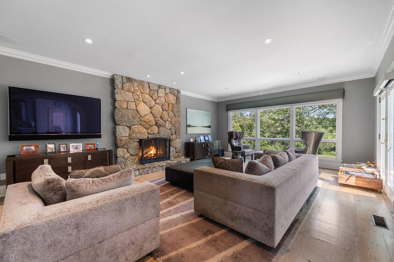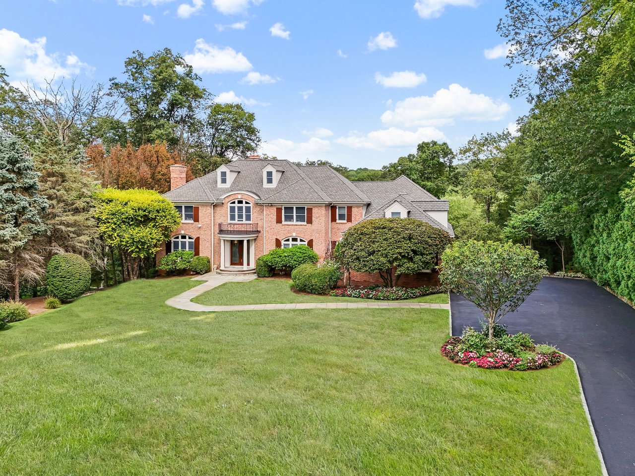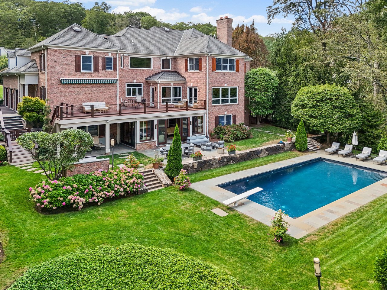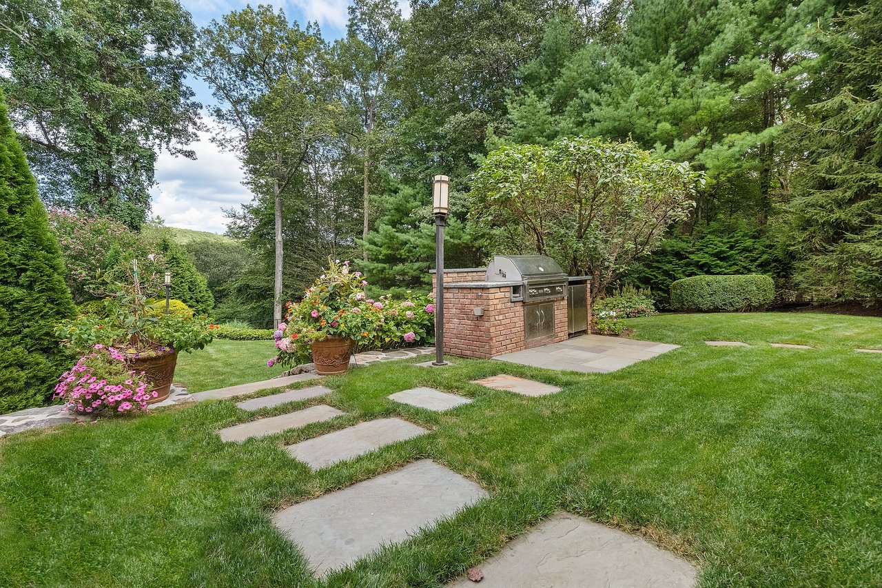Gracious Brick Georgian Colonial, nestled on 2 resort-like acres with a gated drive, was designed for an elevated living experience. Throughout the home are generously sized spaces that seamlessly combine a sophisticated floorplan, perfect for everyday functionality, with tasteful finishes. The two-story grand foyer, anchored by a sweeping staircase and bathed in natural light, creates a striking first impression. The chef’s kitchen is a showstopper with exposed wood beams, custom cabinetry, high-end appliances, center island and adjacent service pantry with ample storage. An elegant arched opening leads you to the family room with stone fireplace and French doors out to an expansive deck. A warm home office with custom paneling and fireplace offers an additional space for work or study. The upper level boasts a primary suite, the crown jewel of this home, featuring tray ceilings, a dressing room with center island, and a truly magnificent spa-inspired bathroom complete with a sauna, soaking tub, and walk-in shower. Three additional ensuite bedrooms, plus a bonus room complete this level. The lower level is for entertaining with a media room, bar, state-of-the-art gym, and a spectacular 3-season porch that leads to the patio and pool area. Outdoors showcases specimen plantings, stone walls, a heated Gunite pool and outdoor kitchen, perfect for relaxation and entertainment. Minutes to Armonk town center, schools and highways. 50 minutes to NYC.